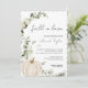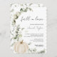 Cette invitation à la douche nuptiale à fleurs à l'eucalyptus citrouille blanc est parfaite pour une douche nuptiale élégante. L'aménagement est composé d'un beau citrouille d'aquarelle blanc, associé à la végétation d'eucalyptus. Une police de script élégante est la touche finale parfaite. La carte revient à un joli motif eucalyptus. Personnalisez avec tous les détails pour votre douche.