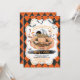 Invitation à la douche pour bébé / neutre genre. citrouille d'aquarelle vintage et élément Halloween avec arrière - plan en bois rustique. Obtenez cette invitation élégante dès maintenant ! Thème : Halloween Style : Vintage, Rétro, Éffrayant, Couleurs mignonnes : Noir, Orange, Blanc Graphiques : Citrouille, bonbons, chauve-souris, araignée, plaid rétro