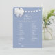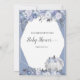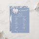 Profitez de cet élégant jeu de baby shower à fleurs d'automne, fille ou garçon, Qu'y a-t-il dans votre sac à main? Feux à cordes sur le devant avec petit citrouille blanc et fleurs sous citrouille. Des fleurs bleues, violettes et blanches avec un arrière - plan bleu poussiéreux. Des modèles ont été fournis sur le dos.