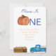 1er anniversaire invitation citrouille avec camion bleu et plan bleu, facile à modifier texte.