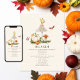 Une invitation baby shower inspirée de la page d'un conte de nature illustrant l'illustration de deux champignons entourés de papillons et de papillons de nuit avec deux citrouilles.