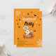 Invitation d'Halloween pour enfants orange vif avec un fantôme mignon, un patch citrouille et un monstre ludique — parfait pour des fêtes amicales. Description complète (champ Zazzle) : Appel à tous les petits fantômes et gobelins ! Cette joyeuse invitation d'Halloween pour enfants donne le ton pour une fête amusante et pas trop effrayante. Avec un arrière - plan orange audacieux, un fantôme souriant, un monstre de bande dessinée amical, des citrouilles, des chauves-souris, des araignées et des webs, c’est le parfait mélange de éffrayant et de mignon. Personnalisez facilement avec le nom de votre enfant, les détails de la fête, la date, l’heure et le RSVP. Idéal pour les fêtes des tout-petits, des enfants d'âge préscolaire et des écoles primaires, les réunions de quartier et les fêtes familiales. Rendre Halloween inoubliable avec une invitation que les enfants et les parents vont aimer — customisez, regardez instantanément, et commandez aujourd'hui.