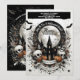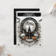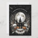 Une invitation gothique bash d'Halloween spooktaculaire avec des crânes et tous les éléments sanglants. Le design comprend une maison hantée avec des crânes, une maison hantée, des citrouilles d'automne et des chauves-souris. Le texte est facilement personnalisable. Le côté inverse a une conception correspondante.