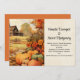 Faire-part de mariage avec une image rustique avec de jolis citrouilles oranges prêts à être récoltés. Une ancienne ferme en bois dans l'arrière - plan.