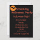 Halloween noir brillant au sommet de l'orange sculpté citrouille brillant sur arrière - plan noir avec éclat orange sur les invitations du parti Halloween. Lune de dos orange avec vol d'oiseau noir et remplir vos informations en texte orange sur arrière - plan noir.