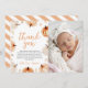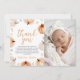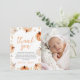 Envoyez une note sincère avec cet adorable carte de remerciements photo citrouille. Doté de citrouilles d’aquarelle, de fleurs d’automne rustiques et d’espace pour la photo de votre bébé, ce design est parfait pour remercier les invités après une petite fête citrouille de premier anniversaire. Personnalisez avec le nom, le message et la photo de votre enfant pour créer un doux souvenir que vos amis et votre famille aimeront.
