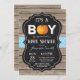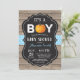 Rustique Citrouille Automne Baby shower Bleu Invitation Card avec arrière - plan en bois rustique, orange et tableau noir. Pour plus de personnalisation, cliquez sur le bouton "Customiser" et utilisez notre outil de conception pour modifier ce modèle.