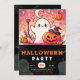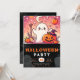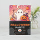 Invitation tes invités à une fête d'Halloween avec cette invitation irrésistiblement mignonne et festive! La partie supérieure de la carte présente une scène enchanteresse dressée contre un arrière - plan orange et violet. Un fantôme charmant se dresse à côté d’une lanterne fantaisiste ornée d’un casquette de sorcière. Autour, une collection de citrouilles, de feuilles colorés, de fleurs joyeuses, d'étoiles scintillantes et d'une lune en croissant contribuent à l'ambiance enchanteresse d'Halloween. La moitié inférieure contraste avec un arrière - plan noir éffrayant, où les chauves-souris grises flottent, les toiles d'araignée sont tissées de manière complexe, et les marqueurs graves ajoutent une touche d'élégance étrange. Le texte de l'invitation est mis en valeur en orange vif et blanc immaculé, avec la date de votre célébration dans un charmant citrouille blanc avec des chiffres orange gras. Retournez l'invitation pour révéler le fond, qui poursuit le thème d'Halloween avec un fond noir rempli de chauves-souris grises ludiques, fantômes espiègles, tombes éffrayantes, jack-o-lanternes brillants, et toiles d'araignées détaillées. La conception est complétée par des arbres et des crânes fantaisistes, créant un mélange parfait de plaisir et de peur. Cette invitation capte l'essence d'Halloween avec son mélange d'éléments mignons et éffrayants. C’est un choix idéal pour donner un ton festif à vos invités et pour une fête à l’allure cupide !