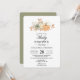 Célébrez l'arrivée imminente de votre petit avec cette élégante invitation pour une baby shower d'automne, qui présente des citrouilles aquarelles peintes à la main, des florales délicates et des tons automnaux chauds. Parfait pour les rassemblements saisonniers confortables, ce design allie charme rustique et élégance intemporelle.