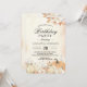 Célébrez dans le style de la saison avec cette invitation d'anniversaire rustique d'automne. Conçue avec des citrouilles aquarelles, des roses crème, des tiges de coton et des feuilles d'automne séchées, c'est l'équilibre parfait entre le charme rustique et les fleurs élégantes.