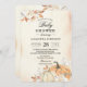 Célébrez l'arrivée imminente de votre petit avec cette invitation de baby shower Rustique d'Automne. Avec ses citrouilles aquarelles, roses crème, feuilles d'automne et son fond texturé chaud, ce design capture parfaitement le charme cosy de la saison automnale.