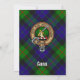Clan Gunn badge crête entouré d'une sangle et boucle sur l'arrière - plan tartan. Texte personnalisé des deux côtés.