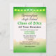 Cette conception verticale d'invitation à la réunion de classe secondaire comprend des bordures vertes en haut et en bas et des lanternes le long du haut. Personnalisez vos informations, supprimez les informations ou cliquez sur personnaliser pour sélectionner une couleur, une taille et un style de police de caractères que vous préférez.