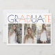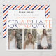 Classe de 2023 Graduate bleu marine et bandes de corail graduation moderne, simple et minimaliste collage photo avec trois photos invitation. Il présente le texte "Graduate" en bleu marine et corail et trois photos. La face arrière est ornée d'une photo et d'un motif rayé en diagonale dans les mêmes couleurs.