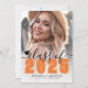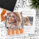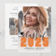 Classic Modern Graduation Faire-part & Fête Invitation. L'avant présente une photo pleine page avec un dégradé blanc en bas qui s'efface sans heurts dans l'image. Au-dessus du dégradé, "2025" apparaît dans une police orange classique en gras. Juste au-dessus, "Classe de" est écrit en élégant script noir. À gauche de l'année se trouve une petite icône personnalisable de casquette de graduation, que vous pouvez modifier pour correspondre à votre schéma de couleurs. En dessous de l'année, le nom du diplômé et le nom de l'école sont affichés en évidence. Toutes les couleurs peuvent être customisées pour correspondre aux couleurs de l'école ou aux préférences personnelles. Le dos se transforme en une élégante invitation à la remise des diplômes, avec une deuxième photo centrée à l'intérieur d'un rectangle arrondi. Ci-dessous, il y a de l’espace pour les détails de la fête, comme la date, l’heure, l’emplacement et l’information sur le RSVP, ainsi qu’un message sincère des parents célébrant les réalisations du diplômé. Entièrement personnalisable, vous pouvez modifier le texte, les polices, les couleurs et les photos pour correspondre à votre style. Une façon parfaite d'annoncer cette étape importante et les êtres chers invitations à célébrer!