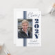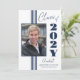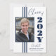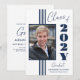 Cette élégante invitation à la remise des diplômes de la Classe 2025 a un design élégant avec des rayures bleu marine, cadre photo et texte sur un arrière - plan blanc.