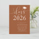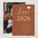 Élégante et simple invitation à la fête de remise de diplômes modèle pour les diplômés du secondaire ou du collège! Le texte de typographie contre l'arrière - plan en terre cuite dit "Classe de 2025" dans la police de caractères de script moderne. Customisez ce produit en ajoutant le nom du diplômé, l'école et l'information sur la fête.
