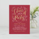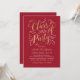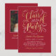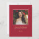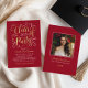 Célébrez avec style avec cette invitation de fête de fin d'études riche en rouge et or avec le design de script « Classe de fête ». Ajoutez le nom de votre diplômé, les détails de la fête et les informations de RSVP pour un look moderne et soigné. Le dos présente une mise en page de photo coordonnée pour mettre en valeur votre portrait préféré. Parfait pour une open house chic ou une fête de diplômé.