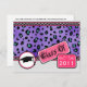 Une classe de graduation de 2011 faire-part invitation avec un design empreinte de léopard violet sur le devant accentué de garniture noire et rose avec de petits pois blancs. "Class of 2011" est un design avec un casquette de graduation en bas. Le côté opposé est simple avec du texte personnalisable.