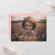 Élégante invitation à la fête de remise des diplômes avec la photo horizontale du diplômé avec "Classe de 2023" affichée dans un script blanc écrit à la main. Personnalisez le devant de l'invitation de la fête de remise de diplômes avec le nom du diplômé et l'école. L'invitation inverse pour afficher les détails de votre fête de remise de diplômes avec un arrière - plan rose vif ou la couleur de votre choix.