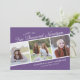 Cette invitation à la remise de diplômes offre trois cadres photo carrés accentués d'élégants textes de script sur un arrière - plan violet. C'est parfait pour les jumeaux, les triplés ou les amis qui célèbrent ensemble leur diplôme.
