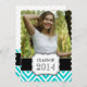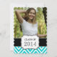 Amusant, fillette, ligne noire, aqua turquoise et blanc chevron motif Graduate Party Invitation avec votre grande photo est la meilleure façon d'invitation vos invités à la fête de graduation de votre fille. Conception par Elke Clarke©.