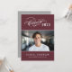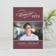 Annoncez votre baccalauréat ou diplômé de l'université en style avec cet élégant faire-part de diplôme de script et l'invitation de la fête. La carte recto-verso comporte deux photos du diplômé, du texte blanc personnalisé et des accents de script calligraphique. Maroon foncé / bordeaux rouge et gris couleurs arrière - plans peuvent être modifiées pour coordonner avec votre photo ou les couleurs de l'école.