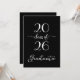 Envoyez des invitations de fête de fin d'études chic et modernes pour la célébration de votre diplômé avec un design de typographie cursive blanche gras qui lit : "Diplômé de la promotion de [ANNÉE]" sur fond noir. Personnalisez l'année sur le devant et remplacez le texte d'exemple au dos de l'invitation pour votre diplômé et votre événement. Le dos noir comporte le mot "célébrez" dans une police de caractères cursive blanche. Personnalisez-le pour tout type de diplômé : lycée, collège, école supérieure, faculté de droit, faculté de médecine ou école professionnelle.
