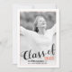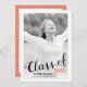 Classe moderne de 2023 script corail frontière photo invitation/faire-part. Il présente une photo du diplômé et le texte "Classe de 2023 en noir et corail.