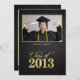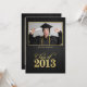 Faire-part de graduation en or noir et métallique. Doté d'un élégant arrière - plan métallique noir aux accents dorés. Ajoutez votre propre photo !