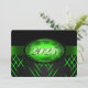 Invitation à la fête de graduation verte et noire avec rayures vert clair et foncé et un ruban vert qui traverse pour montrer l'année de graduation. Le dos de la carte est noir avec une police vert clair pour que les gens puissent remplir les invitations à la fête de remise de diplômes.