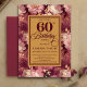 Watercolor 60th birthday invitation with burgundy and blush roses, gold leaves, and boho style, professionally printed by Zazzle on premium cardstock with rich color, crisp detail, and an elegant finish.