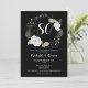 Célébrez ce grand anniversaire avec cet hiver élégant et classique couleur d'eau florale noir et blanc vert 80e anniversaire Invitation! Design montre une couronne florale de roses, pins et eucalyptus en parties scintillant blanche, verte et or. Écriture de script et de bloc affichée. Tout le texte, y compris l'âge, peut être modifié et différentes options de couleur sont disponibles.