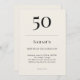 Classic black and soft ivory minimalist birthday invitation with elegant typography for a 50th celebration. Name age date time location and RSVP are fully customizable to suit formal or black tie adult events.