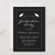 Cette invitation classique et moderne à la remise des diplômes comporte du texte blanc dans une mince bordure rectangulaire blanche sur un arrière - plan noir. Le mot "Graduation" et le nom du diplômé apparaissent dans une police d'écriture moderne décontractée sous une paire de casquettes de tableau de mortier blanc. Customisez l'invitation avec les détails de la fête. Le dos de la carte est noir.