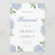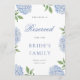 Invitation Classic Blue Hydrangea Border Reserved Row Card