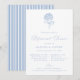 Invite guests to your wedding weekend with this classic blue hydrangea wedding rehearsal dinner invitation, featuring a delicate hand-drawn blue hydrangea at the top for an elegant and refined look. The words “Rehearsal Dinner” are shown in soft blue calligraphy, paired with classic serif lettering for the event details below. The soft blue and white color palette makes this design ideal for spring and summer rehearsal dinners, garden weddings, coastal weddings, and traditional weddings. The back of the invitation features blue and white vertical stripes, adding a polished, heritage-inspired finishing touch. A beautiful choice for couples looking for a classic floral rehearsal dinner invitation with a clean and sophisticated style.