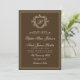 Elegant vintage crest monogram dark coffee brown and ivory buttercream classic formal traditional framed wedding invitation with QR code to website for guest information details and RSVP, featuring a classy hand lettered calligraphy script. +++++++++++ Suitable for timeless stylish old money themed weddings.