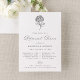 Invite guests to your wedding weekend with this charcoal gray hydrangea wedding rehearsal dinner invitation, designed with a refined and understated look. A hand-drawn hydrangea illustration is featured at the top, followed by “Rehearsal Dinner” in soft charcoal calligraphy, with the event details displayed below in classic serif lettering. The charcoal gray and white color palette creates a neutral, versatile design that works beautifully for formal rehearsal dinners, evening events, and classic wedding settings. The back of the invitation features charcoal gray and white vertical stripes, adding a polished, heritage-inspired finishing touch. A sophisticated choice for couples looking for a classic floral rehearsal dinner invitation with a timeless, neutral style.