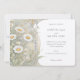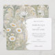 Invitation vos invités à votre mariage avec cette invitation élégamment conçue avec un thème marguerrier intemporel. L'avant de la carte présente un arrangement délicat de marguerites blanches en pleine floraison, magnifiquement accentué par des tons pastel doux de vert et jaune. Le design floral complexe est complété par une typographie élégante qui transmet les détails de votre journée spéciale. L'arrière de l'invitation poursuit le thème avec une illustration de marguerite en pleine page, ajoutant une touche de beauté naturelle et de charme. Parfait pour les couples qui souhaitent un mariage classique, rustique ou d'inspiration nature, cette invitation capte l'essence d'une célébration romantique et intemporelle.