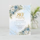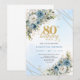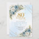Invitation Classic Dusty Blue Floral Gold 80th Birthday Invit