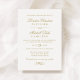 Le design classique de faire-part de mariage d'or antique présente une belle typographie qui combine un script de calligraphie traditionnel florissant avec du lettrage de bloc classique sur un arrière - plan blanc propre. Comprend un accent décoratif design de défilement. Le texte personnalisé peut être entièrement personnalisé pour votre jour de mariage. Veuillez acheter notre collection Classic Elegant Antique Gold Mariage Collection pour coordonner les conceptions.