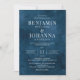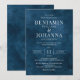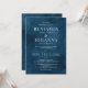 Invitation de mariage classique et élégante avec un arrière - plan d'aquarelle bleu floral et des lettres blanches. Conception uniquement textuelle avec un libellé traditionnel. Options de papier imprimé numérique ou physique. Personnalisez-le avec les noms de M. et Mme, l'emplacement du lieu, le registre, les informations RSVP et tous les détails que vous devez inclure. Produits de suite correspondants disponibles.