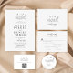 Modern, minimalist, classy, formal, monogrammed white and black typography wedding invitation featuring an elegant floral botanical leafy branch.