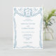 Classic Formal Elegant Français Blue Coquette Floral Bow Invitation avec une crête monogramme, main dessinée par Savanamm