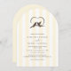 The Classic Modern Ivory Birds Romantic Wedding Arch Invitation features a soft ivory background with subtle vertical stripes and a graceful arch shape. A romantic birds illustration forms a heart, symbolizing love, unity, and commitment. The design feels elegant, warm, and timeless.