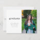 Cette invitation de graduation comporte une police noire minimaliste sur un arrière - plan blanc. La photo est à des fins de placement seulement et peut être remplacée par n'importe quelle photo de votre choix. Customisez le texte à l'avant et à l'arrière de la carte avec tous les détails de votre fête de remise de diplômes. #fête de l'obtention du diplôme #classe de #diplôme d'études secondaires