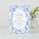 Create a timeless first impression with this baby shower invitation featuring elegant French toile de jouy roses in refined shades of navy blue, royal blue, dusty blue, and deep blue, inspired by classic chinoiserie floral design. This sophisticated style blends heritage elegance with modern charm, making it perfect for a memorable baby shower celebration.