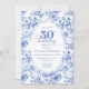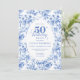 Invitation Classic Navy Blue Toile Roses 50th Birthday Invite