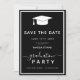 Graduation Classique Noir et Blanc Enregistrer la date Invitation script de diplôme ouvert maison photo graduation. Ajoutez vos photos préférées avec une élégante calligraphie script et un collage de grille photo.